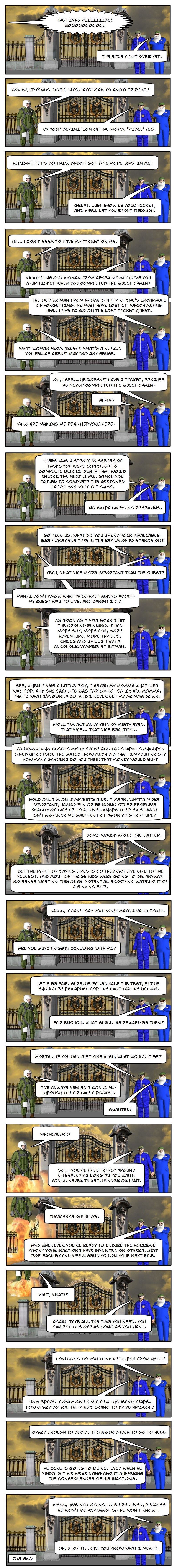 Loki and a friend taunt the dead at the Pearly Gates to the Underworld