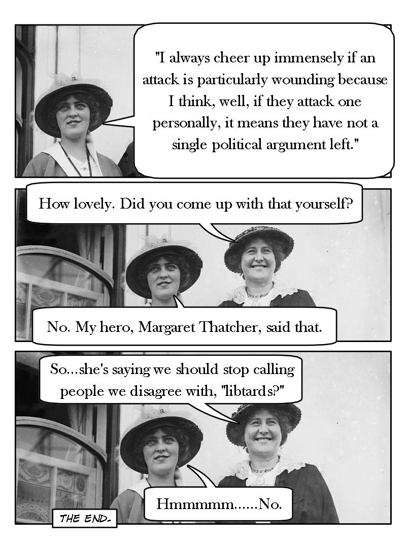 Lady #1: No. My hero, Margaret Thatcher, said that.